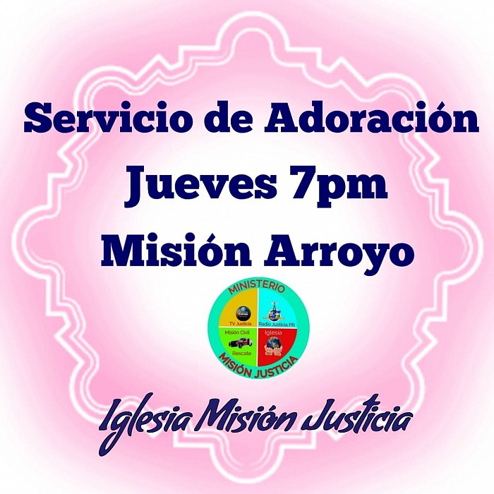 SERVICIO DE ADORACION JUEVES 7:00PM EN LA MISION ARROYO